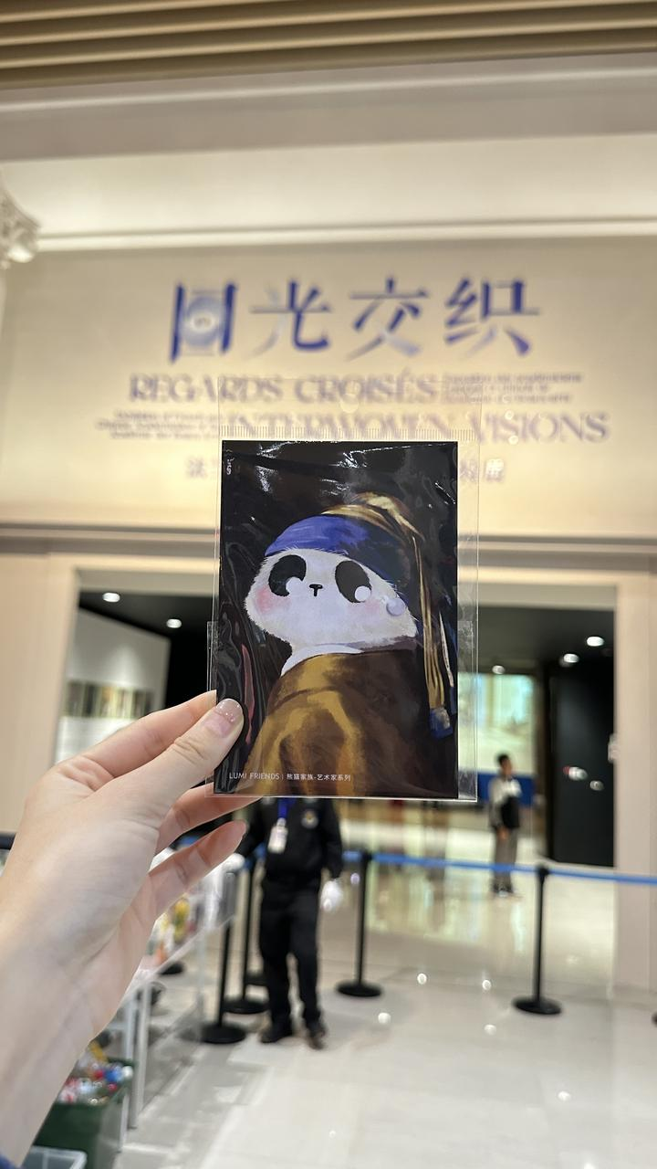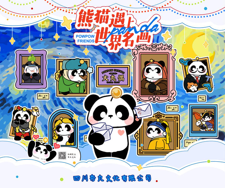 方梓熙指着其中一幅作品解释,“所谓融合并不是简单粗暴地进行‘换脸’,而是要找到熊猫形象和世界画作的共鸣点。有时候关于一根线条的深浅,整个团队都要讨论两三天。这个系列开发耗时近半年,打样了4次才确定最终的成品。”