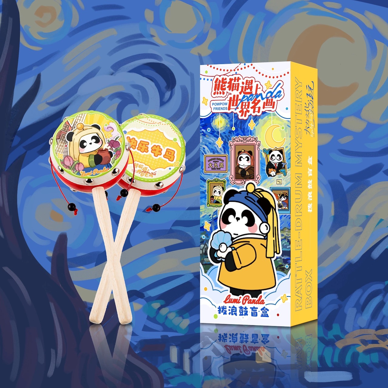 鲁米熊猫遇见世界名画拨浪鼓盲盒
